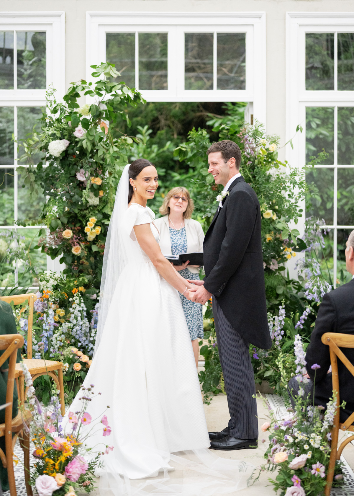 They opted to have their ceremony conducted in the stunning Came House conservatory whose dome was designed by Charles Fowler. Fowler is also the architect responsible for Covent Garden Market. The beautiful flowers by Botany and Blossom made the space extra special for a wedding.