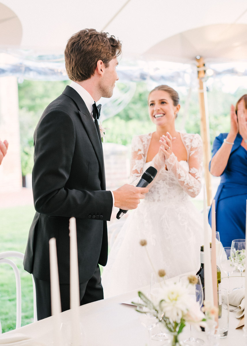 Photographer: Hannah Duffy Photography  | Planner: Cara at Katrina Otter Weddings | Florist: Aelisabet Flowers | Caterer: Kalm Kitchen | Sperry Tent: The Sail Tent Company | Venue: Ardingly College