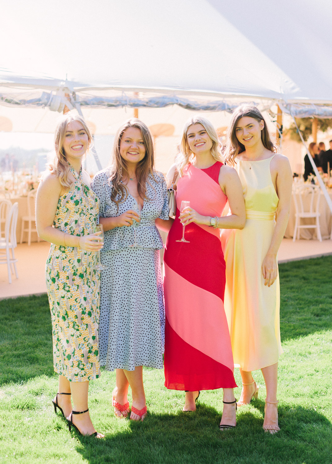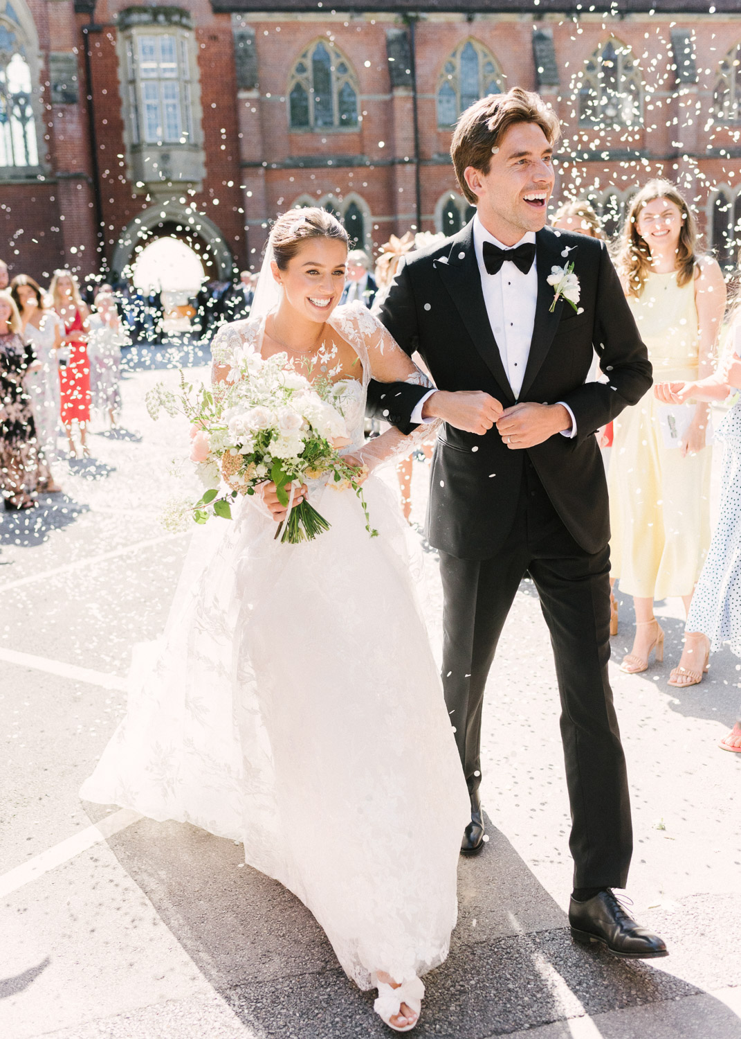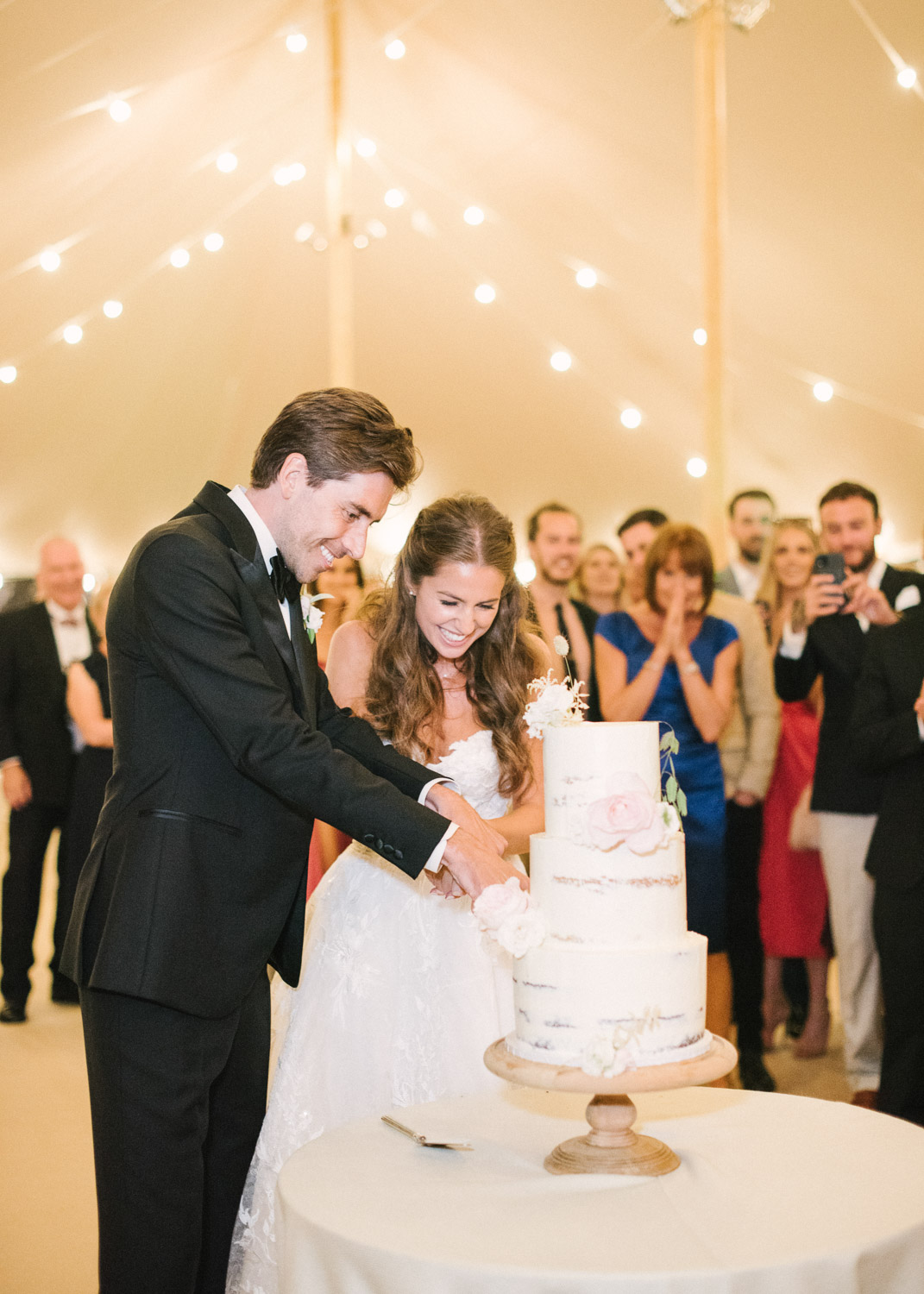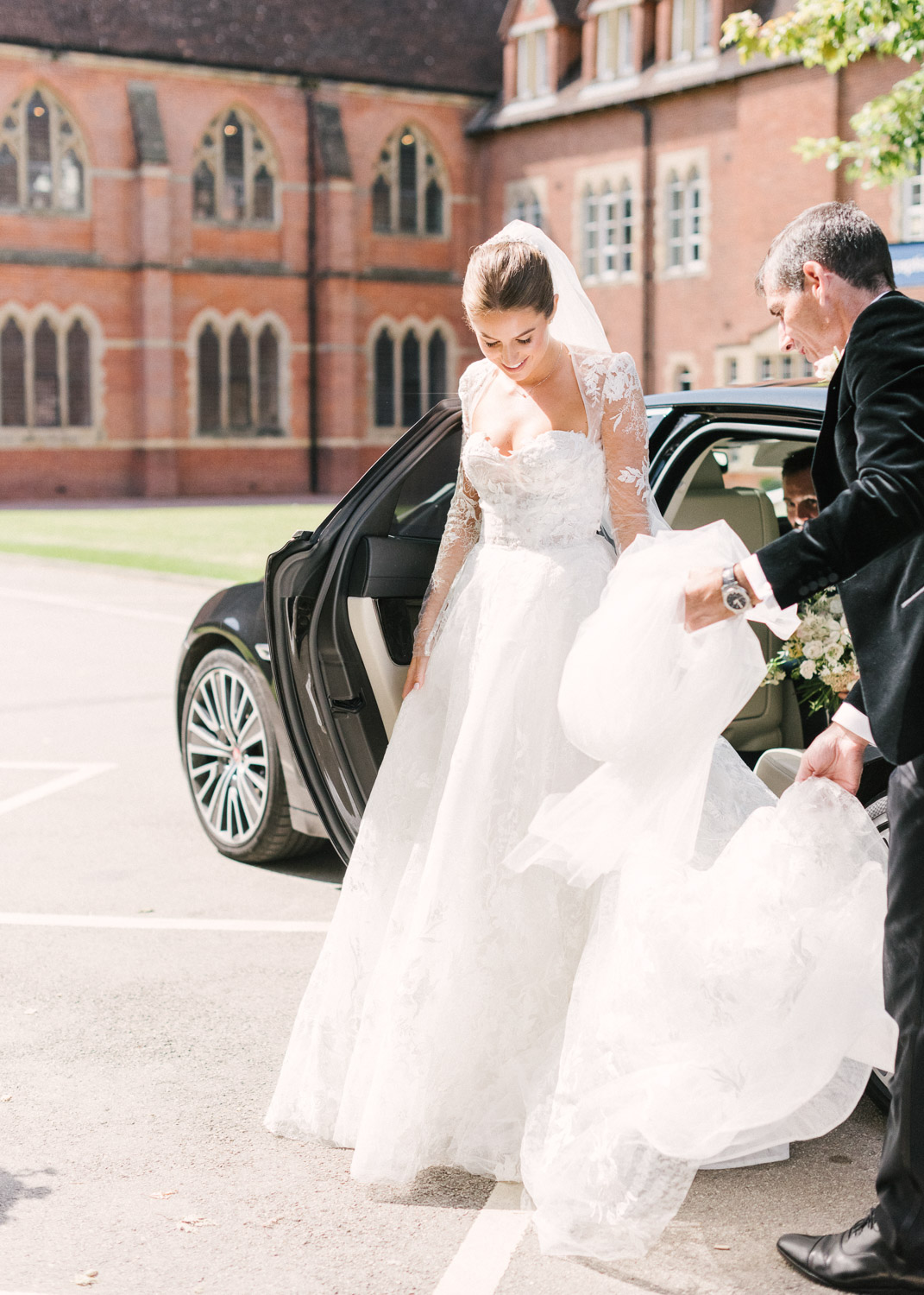 Ellie got ready at her family home surrounded by family and close friends before heading to Ardingly College to marry and celebrate with her husband and guests. Aelisabeta Flowers decorated the aisle of with big clouds of florals which looked so lovely with the light streaming in through the windows. It was a warm summer’s day so everyone was able to make the most of the lawn from the afternoon until late into the evening. The beautiful sperry tent looks oh-so pretty glowing in the low evening light. It was a day filled with love and laughter, planned to perfection by Cara at Katrina Otter Weddings.