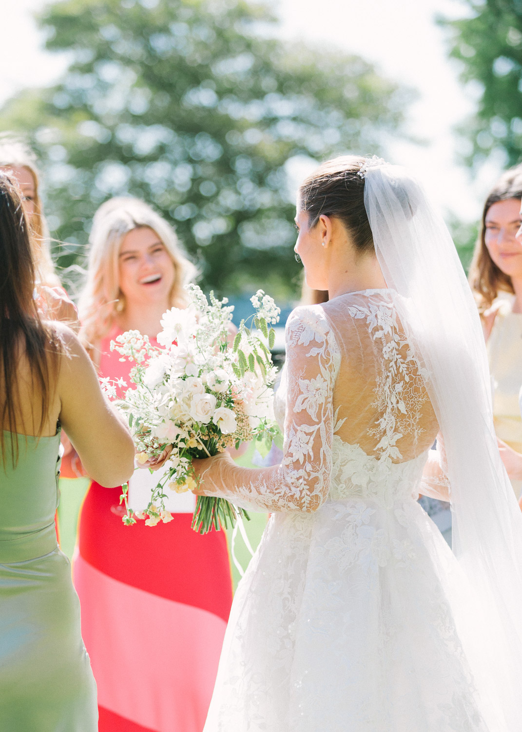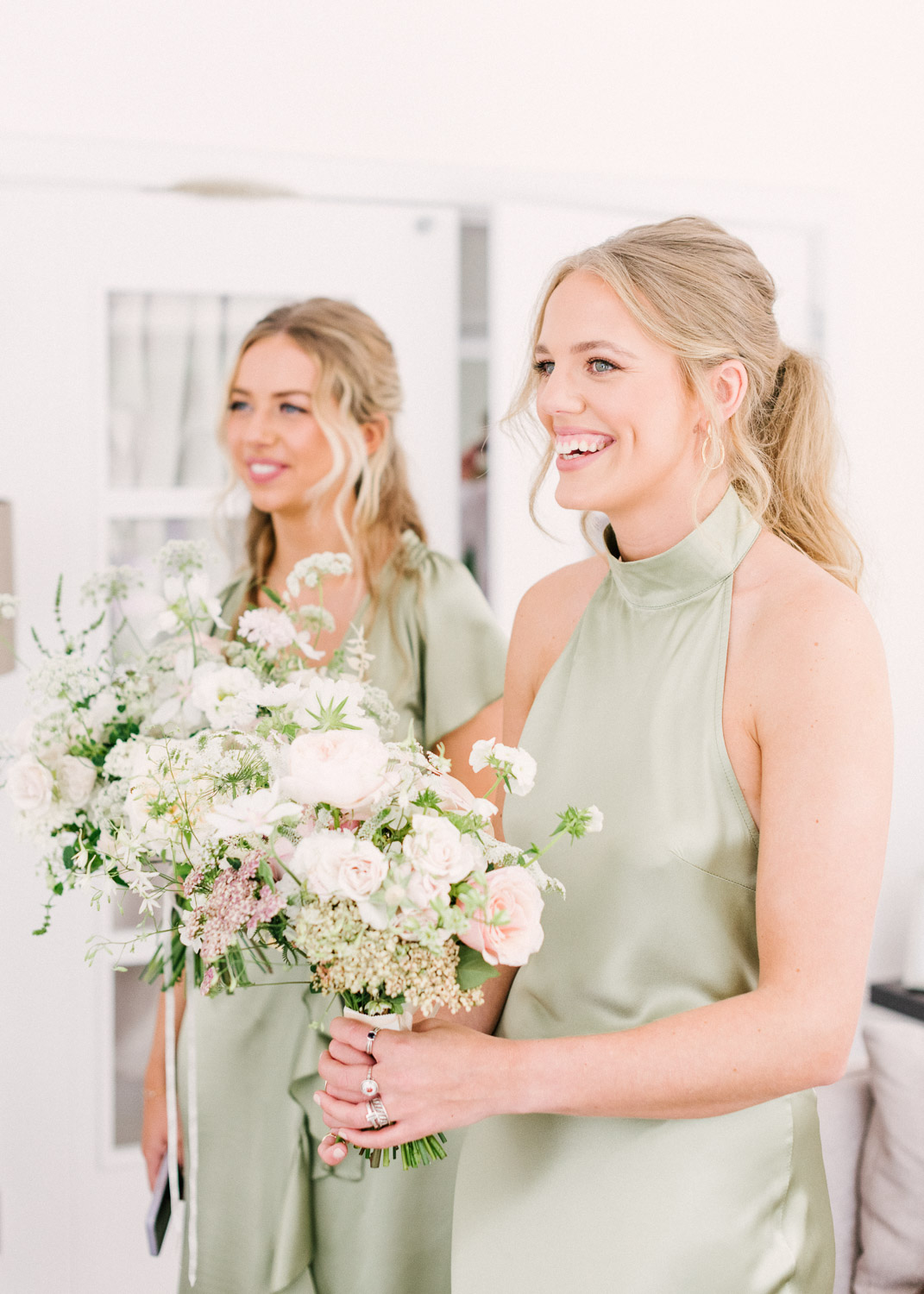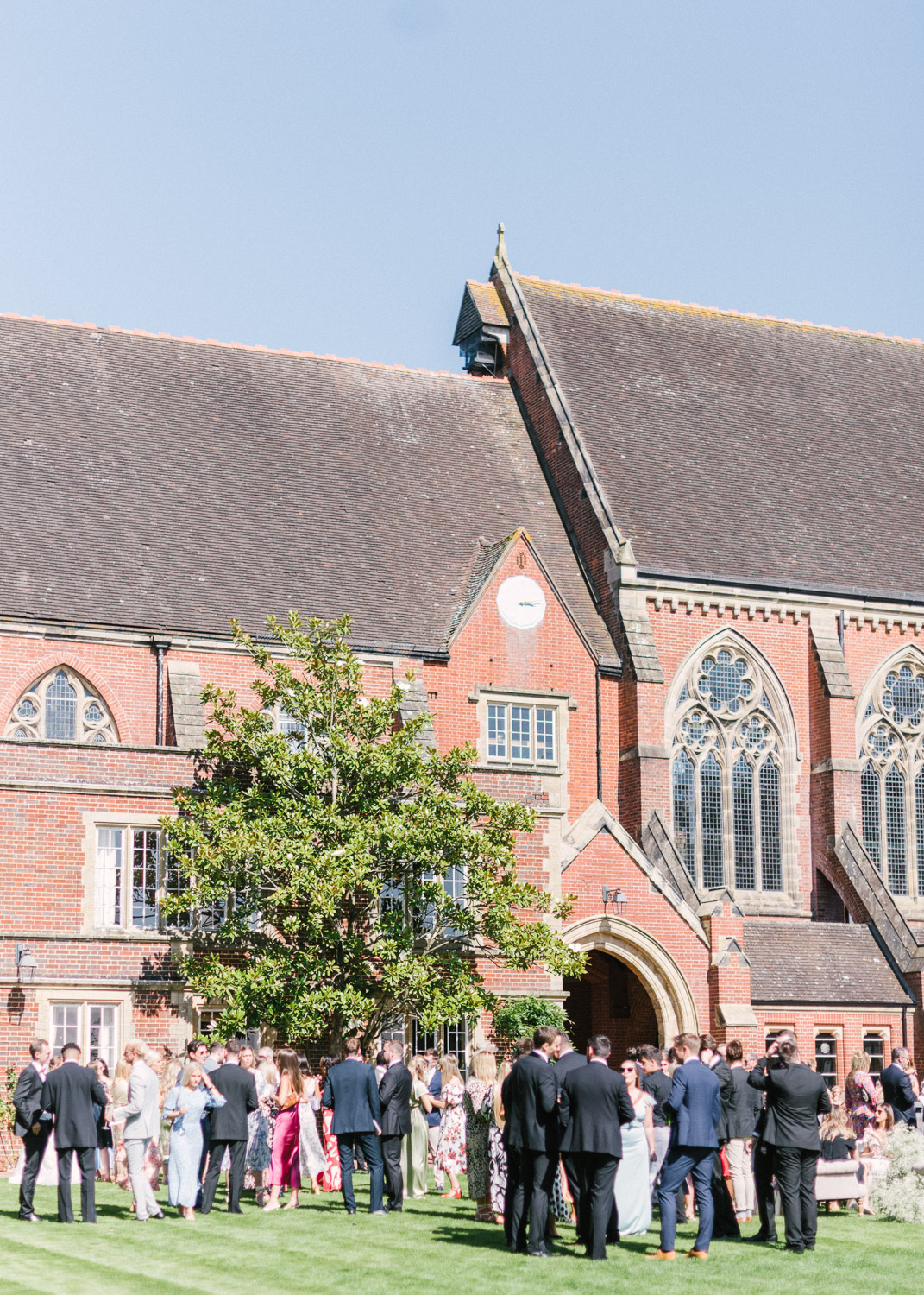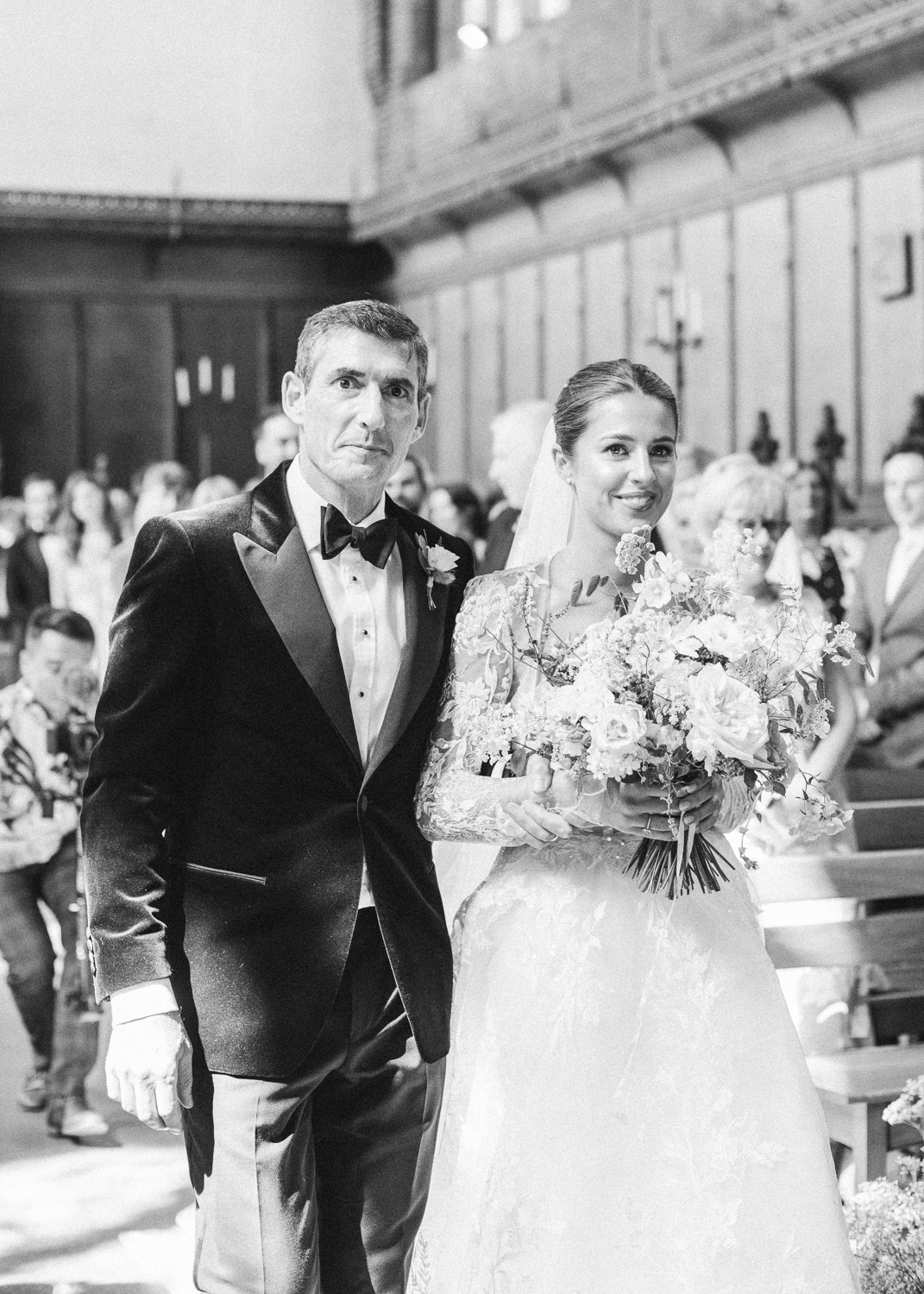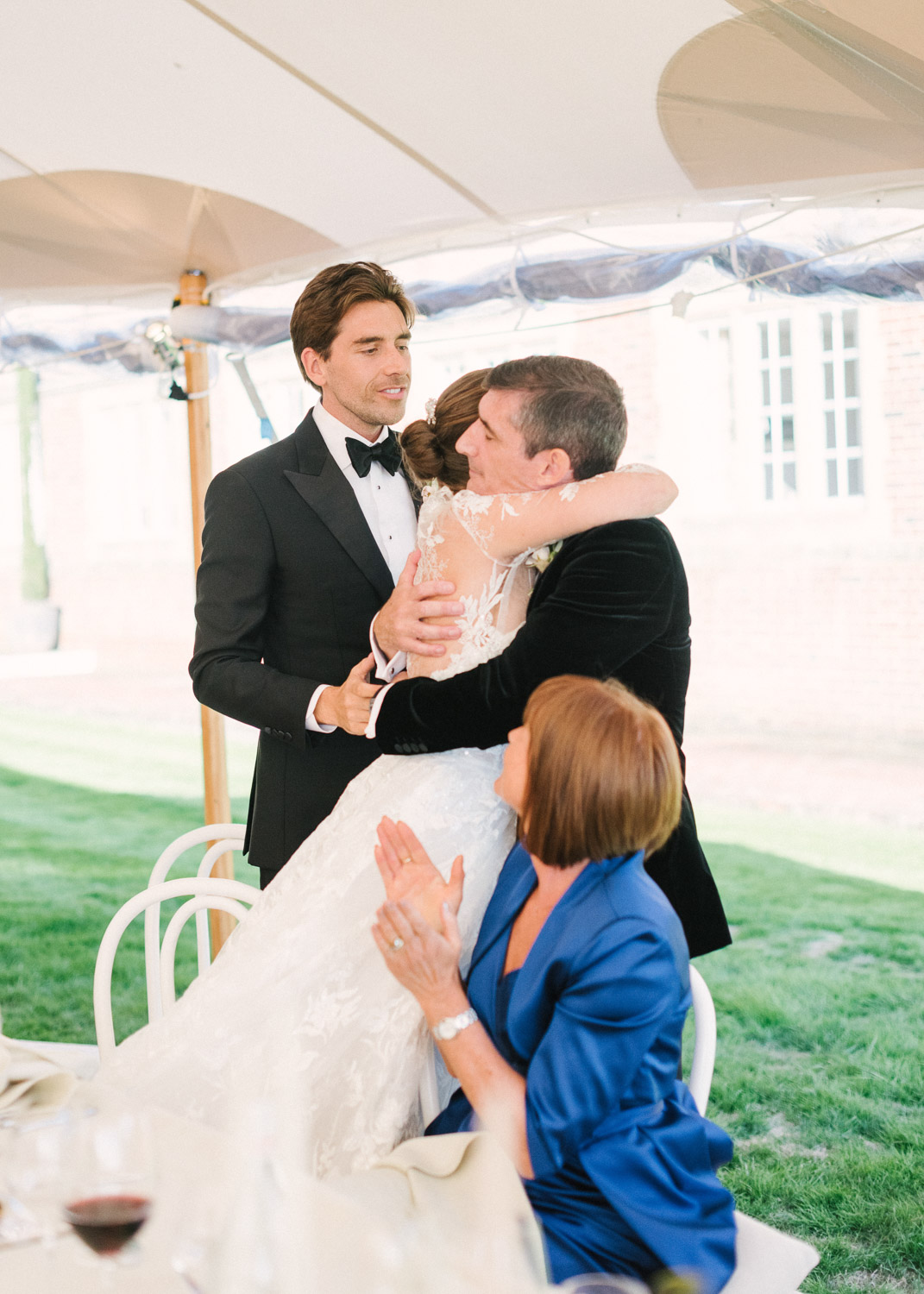 Ellie got ready at her family home surrounded by family and close friends before heading to Ardingly College to marry and celebrate with her husband and guests. Aelisabeta Flowers decorated the aisle of with big clouds of florals which looked so lovely with the light streaming in through the windows. It was a warm summer’s day so everyone was able to make the most of the lawn from the afternoon until late into the evening. The beautiful sperry tent looks oh-so pretty glowing in the low evening light. It was a day filled with love and laughter, planned to perfection by Cara at Katrina Otter Weddings.