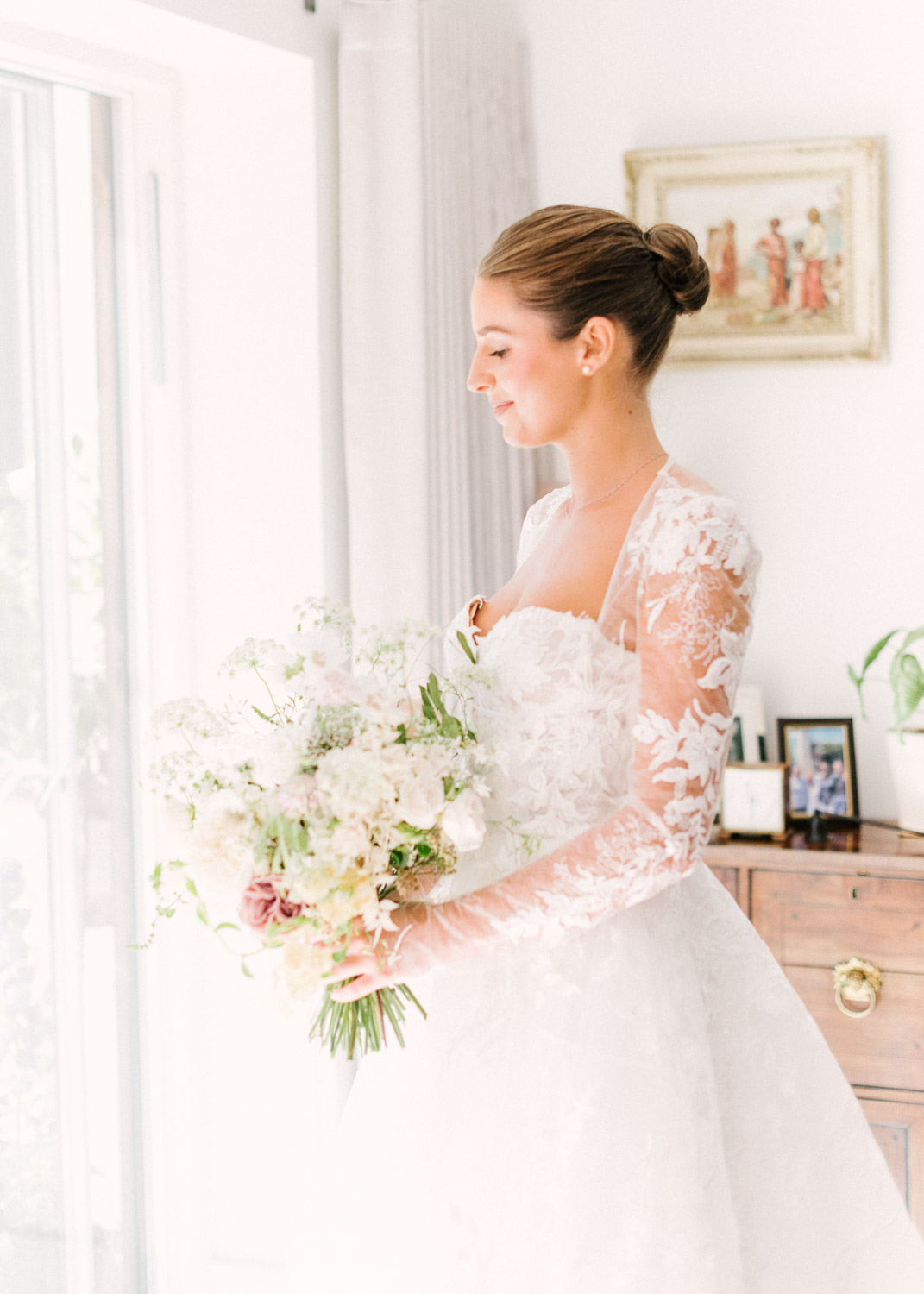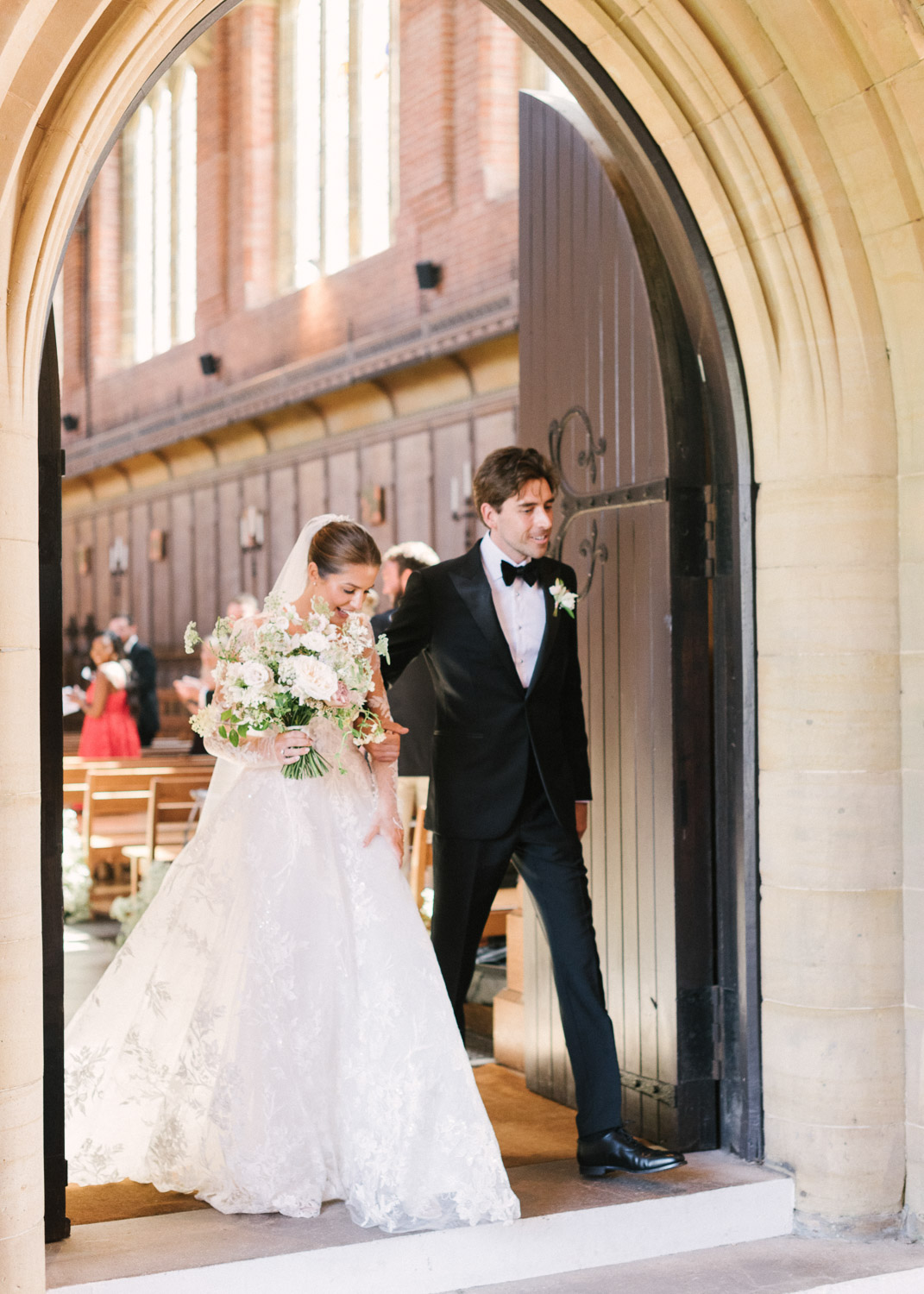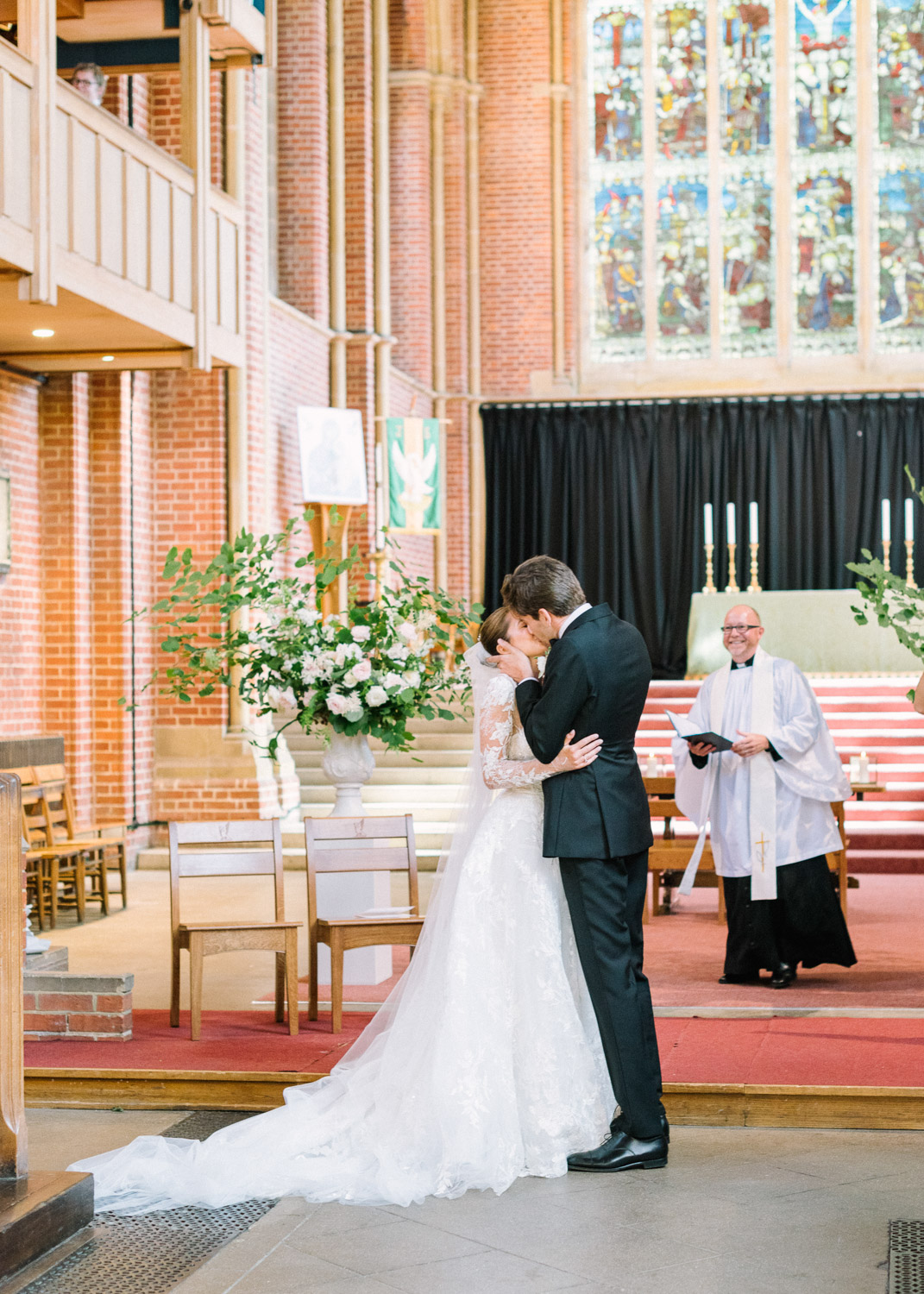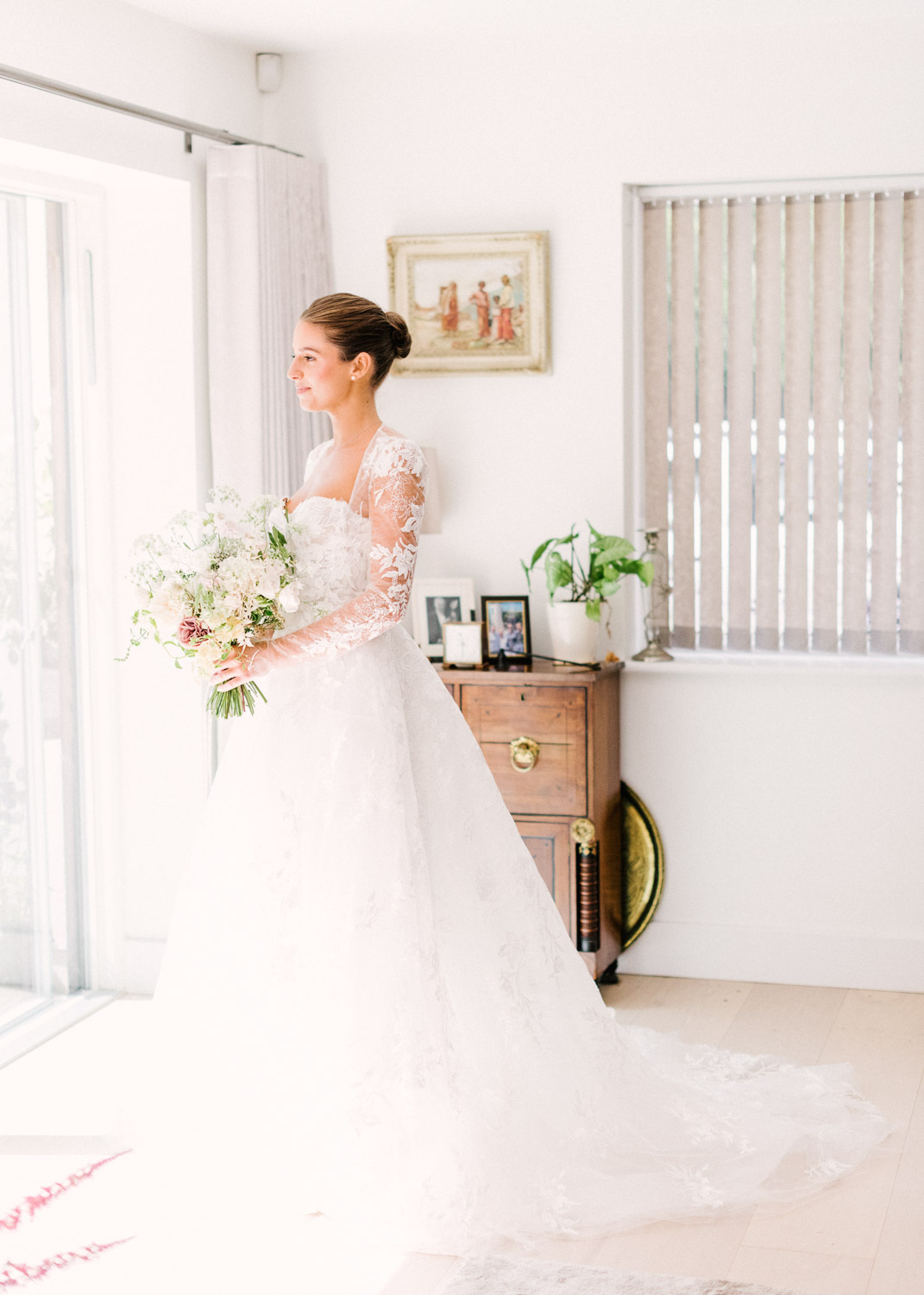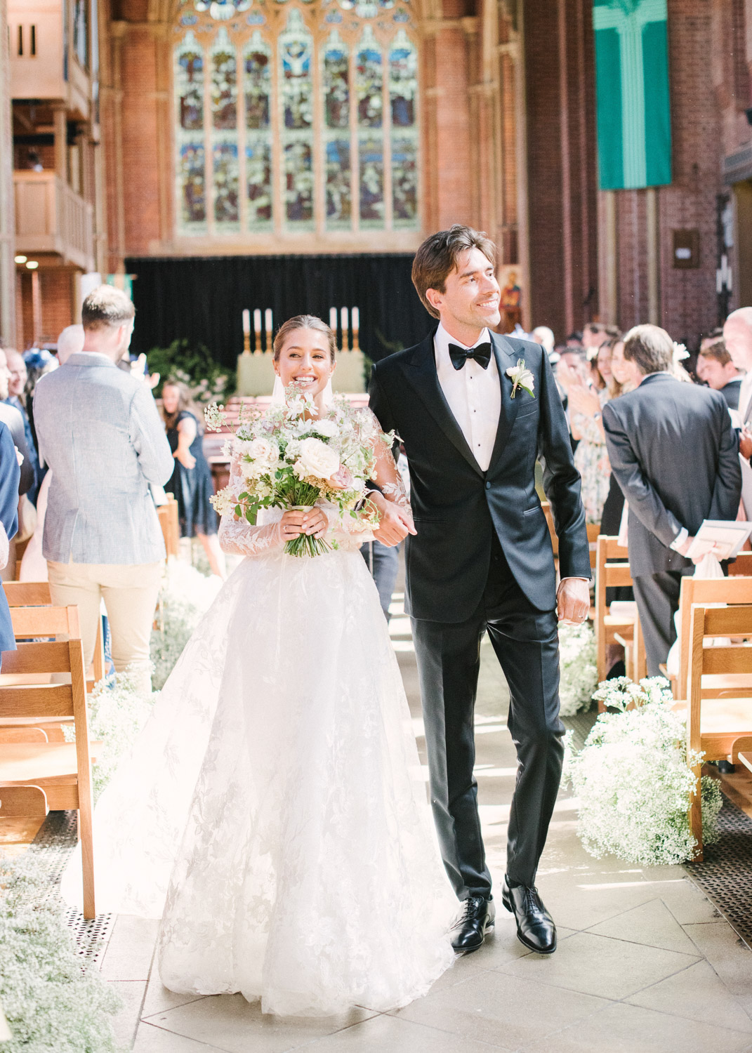 Ellie got ready at her family home surrounded by family and close friends before heading to Ardingly College to marry and celebrate with her husband and guests. Aelisabeta Flowers decorated the aisle of with big clouds of florals which looked so lovely with the light streaming in through the windows. It was a warm summer’s day so everyone was able to make the most of the lawn from the afternoon until late into the evening. The beautiful sperry tent looks oh-so pretty glowing in the low evening light. It was a day filled with love and laughter, planned to perfection by Cara at Katrina Otter Weddings.