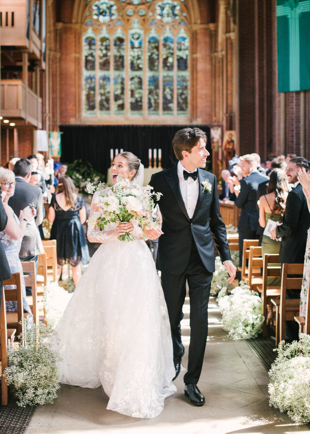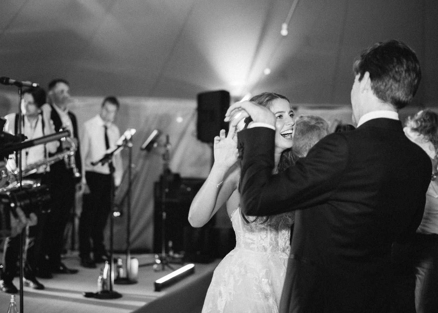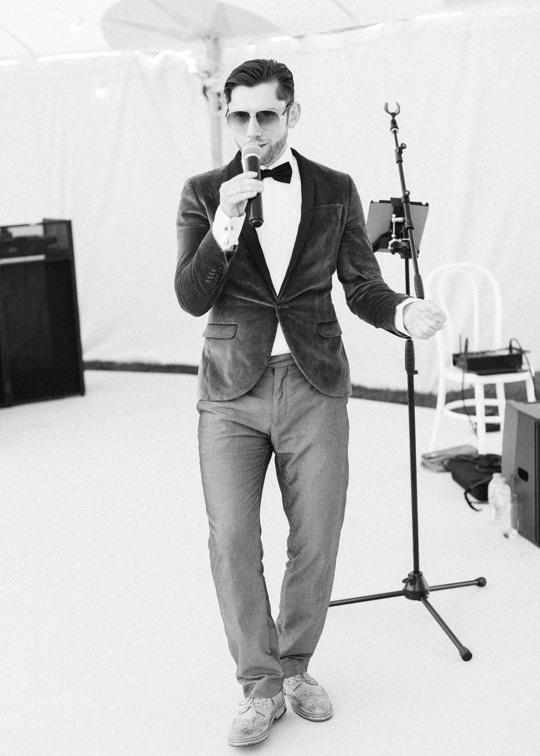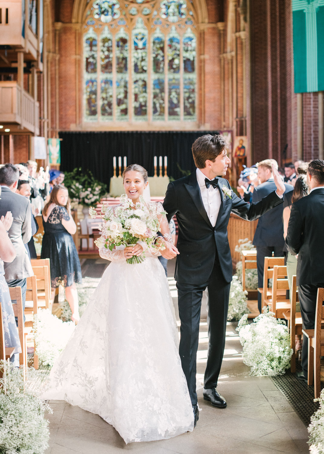 Ellie got ready at her family home surrounded by family and close friends before heading to Ardingly College to marry and celebrate with her husband and guests. Aelisabeta Flowers decorated the aisle of with big clouds of florals which looked so lovely with the light streaming in through the windows. It was a warm summer’s day so everyone was able to make the most of the lawn from the afternoon until late into the evening. The beautiful sperry tent looks oh-so pretty glowing in the low evening light. It was a day filled with love and laughter, planned to perfection by Cara at Katrina Otter Weddings.