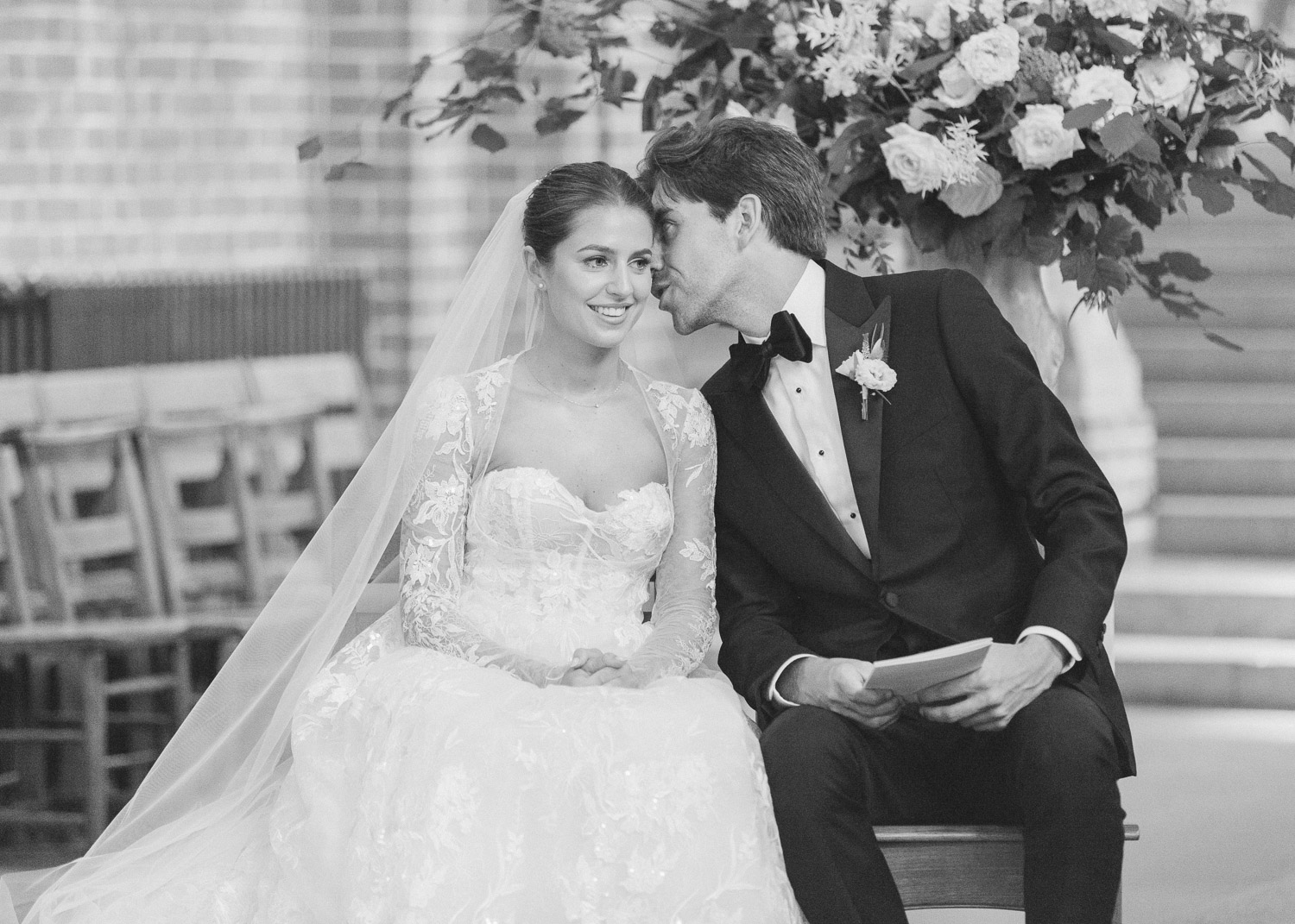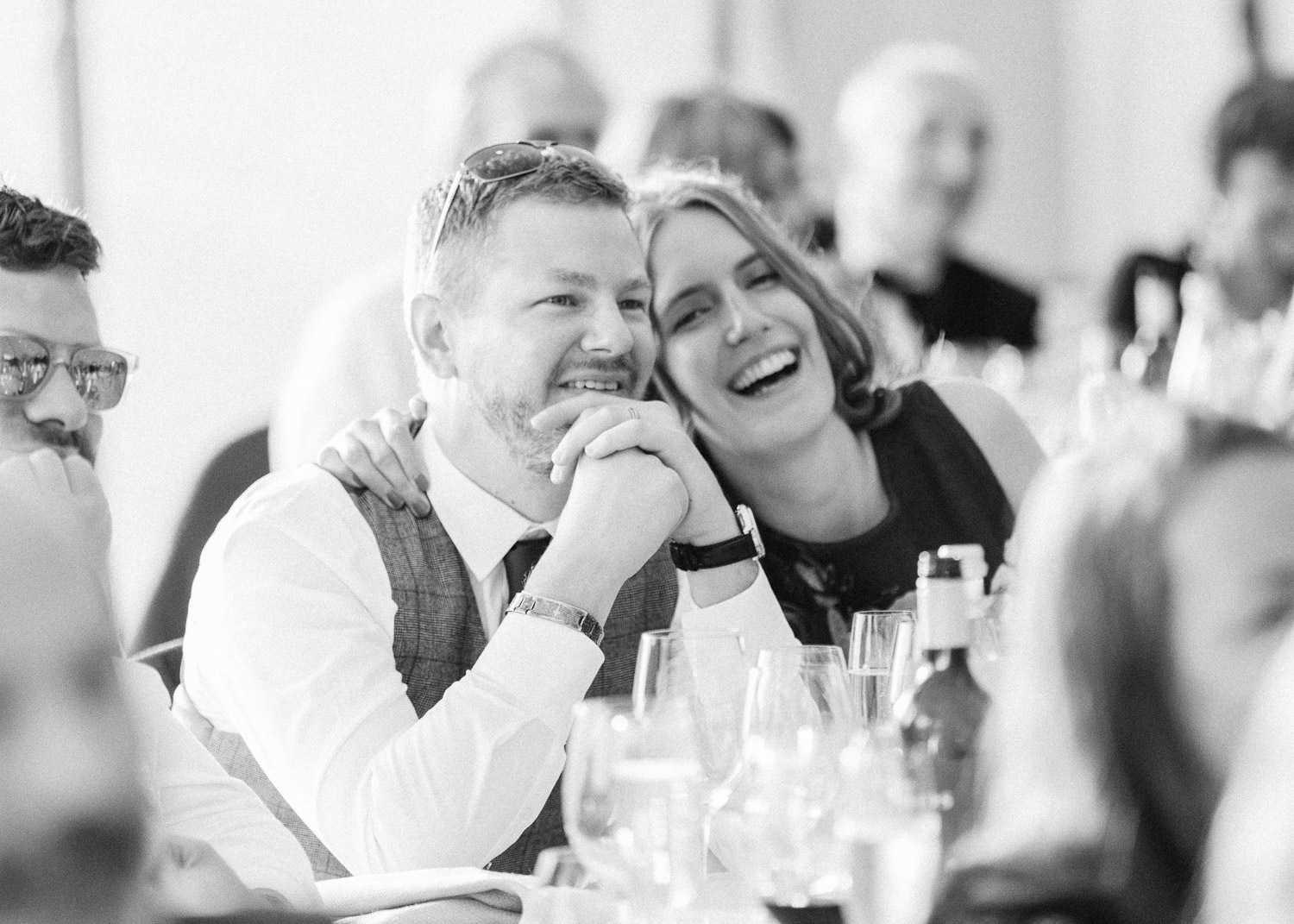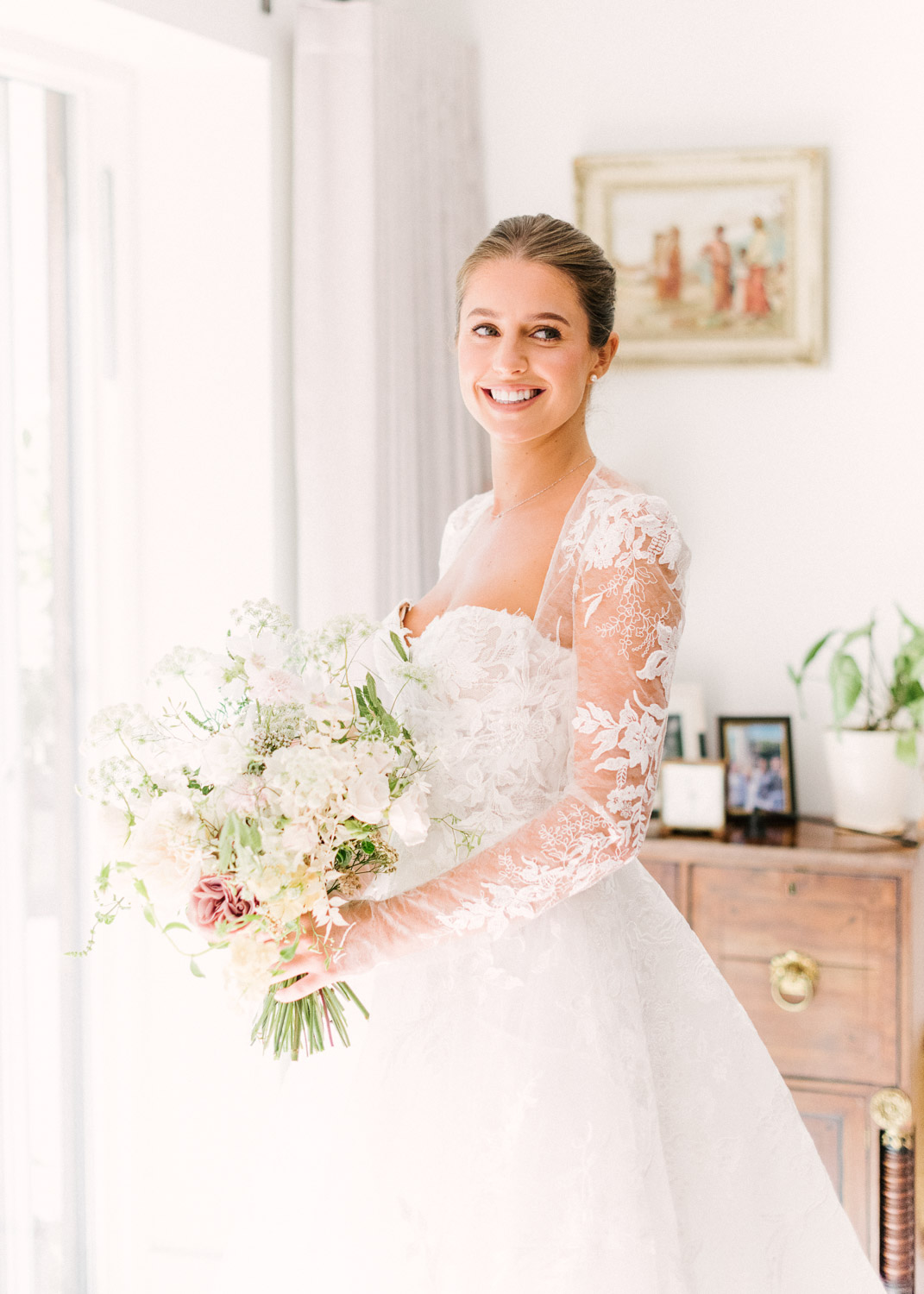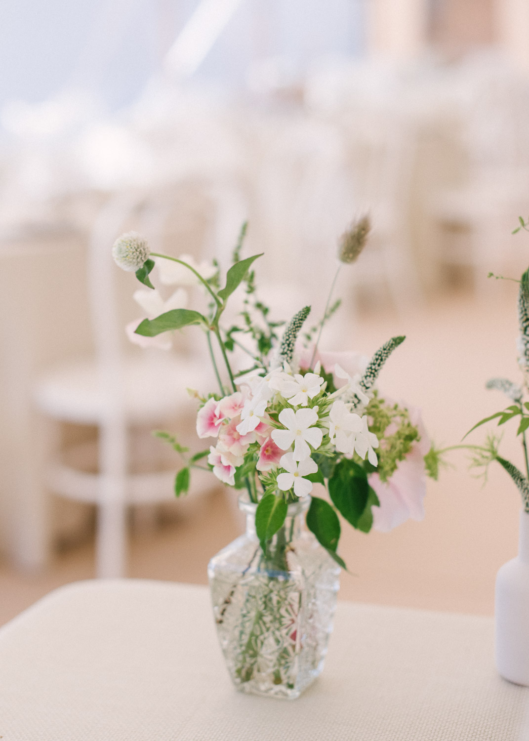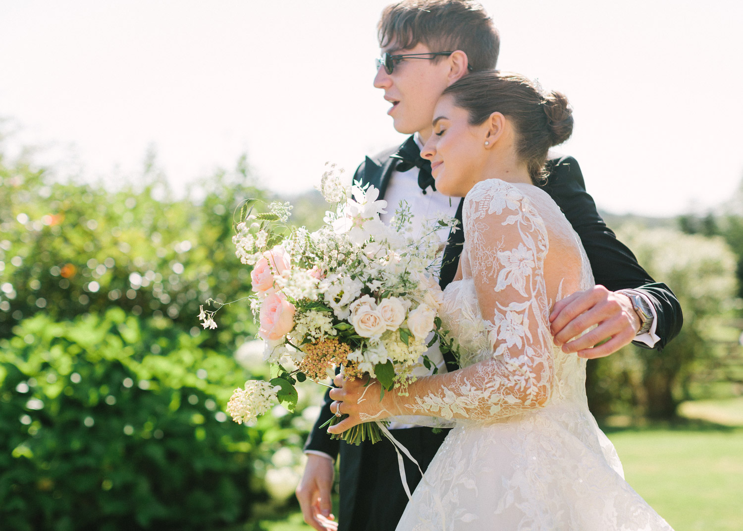 Ellie got ready at her family home surrounded by family and close friends before heading to Ardingly College to marry and celebrate with her husband and guests. Aelisabeta Flowers decorated the aisle of with big clouds of florals which looked so lovely with the light streaming in through the windows. It was a warm summer’s day so everyone was able to make the most of the lawn from the afternoon until late into the evening. The beautiful sperry tent looks oh-so pretty glowing in the low evening light. It was a day filled with love and laughter, planned to perfection by Cara at Katrina Otter Weddings.