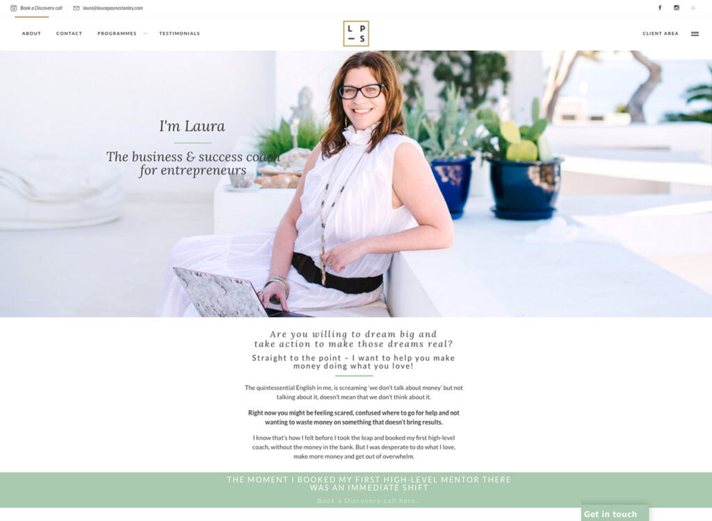 Here are a few favourites from Laura’s personal branding photography session in Ibiza as well as some screen grabs of how they were used on her website. You can see more photos from Laura’s personal branding photography session in my portfolio by clicking here.